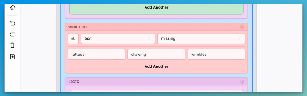 We'll pop in a new "any of these" logic node to wrap around our word lists: